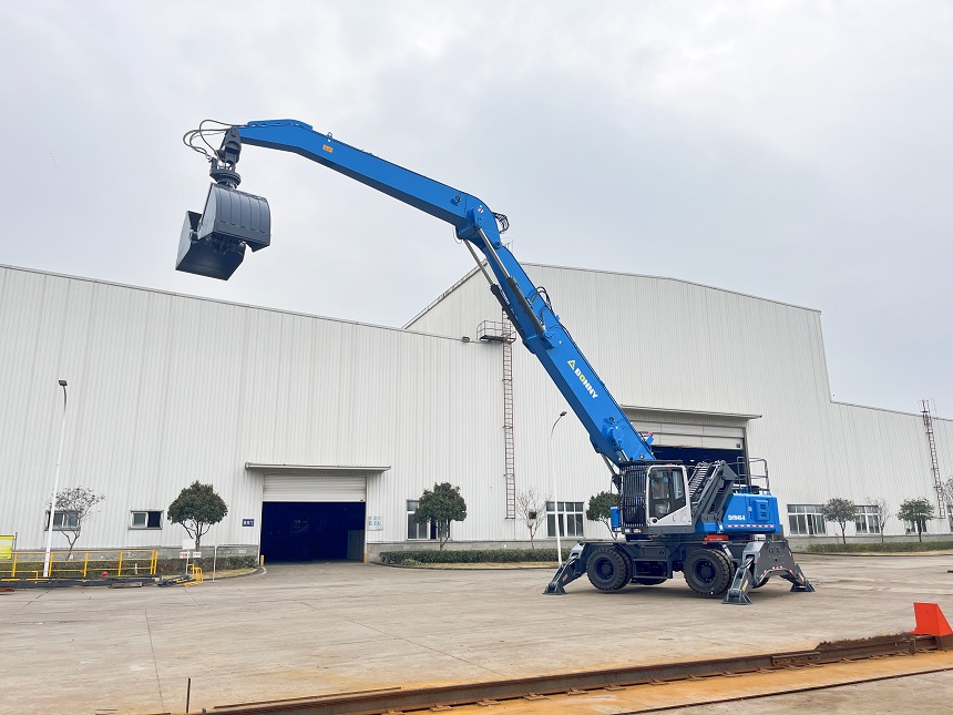 BHW48輪胎式港口碼頭抓鋼機(jī)適用于鋼廠料場裝卸廢鋼、裝卸火車皮物料、港口碼頭裝卸物料,廢鋼等,具有以下特點(diǎn):