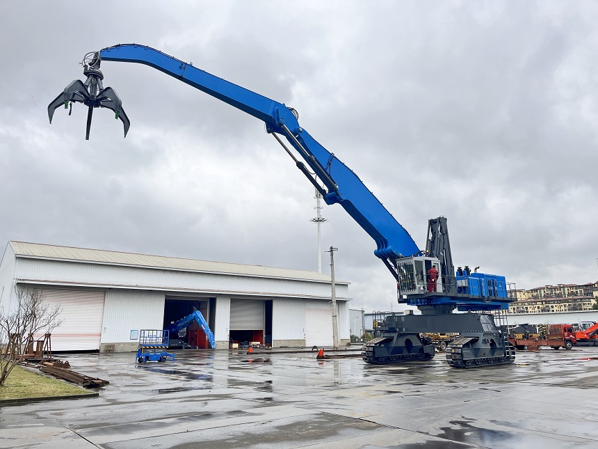 ●可以選擇配備多種工作裝置(抓斗)實現(xiàn)廢鋼、圓木、木屑、原煤、草料等多種物料的抓取、裝卸